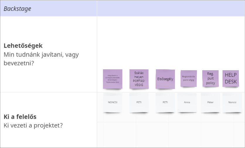 A touchpointok és a painpointok azonosítása segített abban, hogy a szervezők empatikus módon vizsgálják és kezeljék azokat a problémákat, amelyek feszültséget, frusztrációt okozhatnak a látogatók számára. Miután ezeket feltártuk, igyekeztünk megoldásokat keresni a felmerült nehézségre, és konkrét felelősöket rendeltünk az egyes feladatokhoz, hogy ezáltal is könnyebbé, gördülékenyebbé tegyük az esemény lebonyolítását.