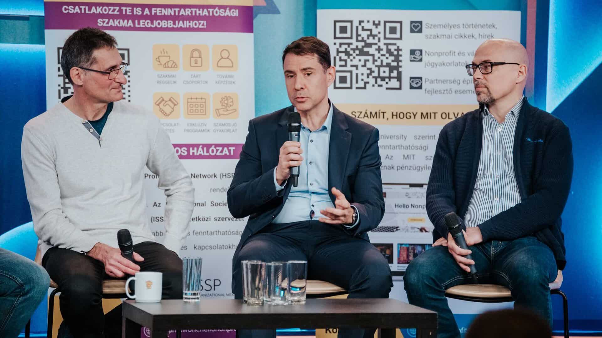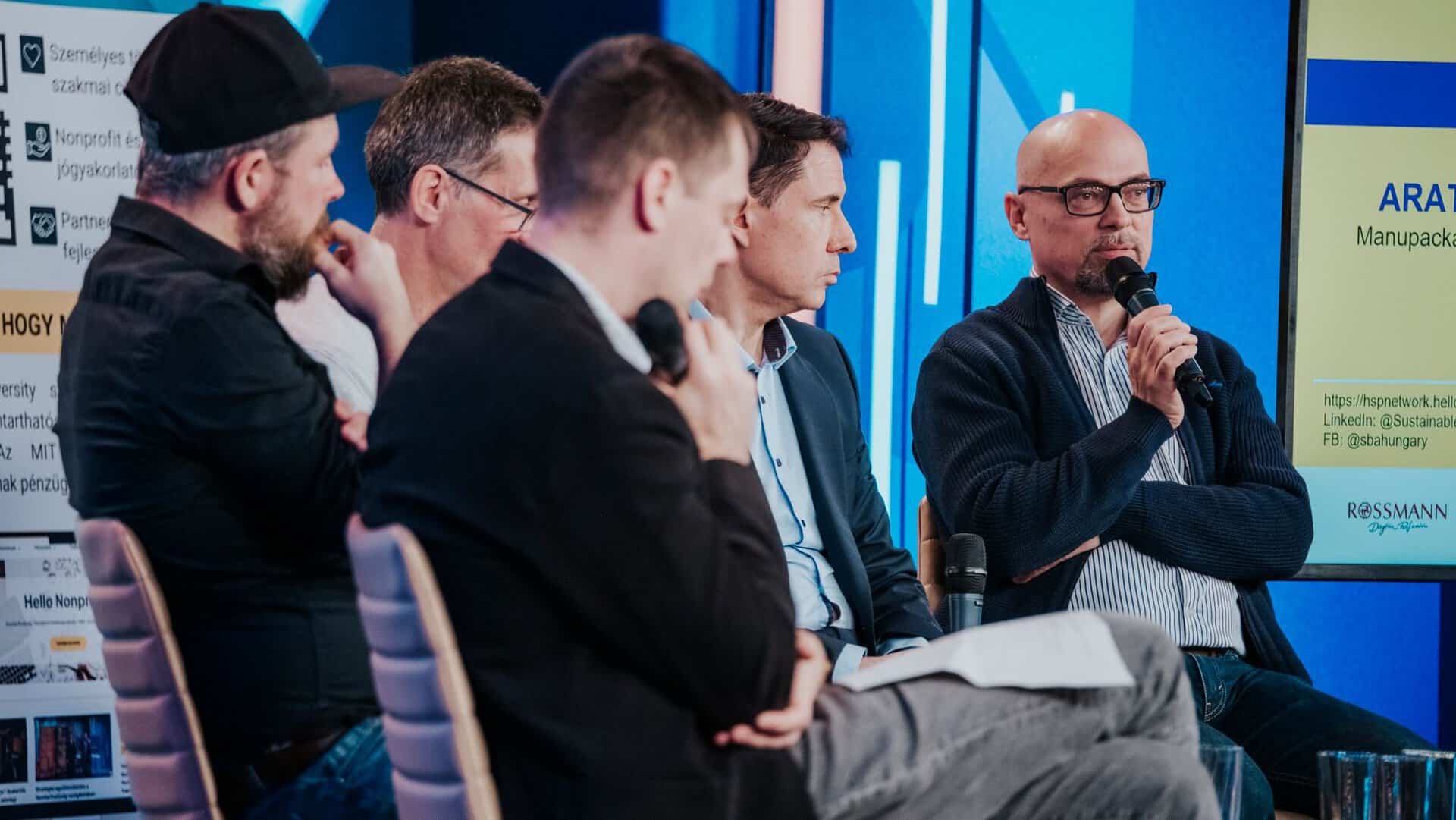 Kerekasztal-beszélgetés: Litkai Gergely, Ferenczi Attila, Runtág Tivadar, Szőnyi Zoltán, Arató Gábor. Fotó: Eördögh Lola – Hello Nonprofit