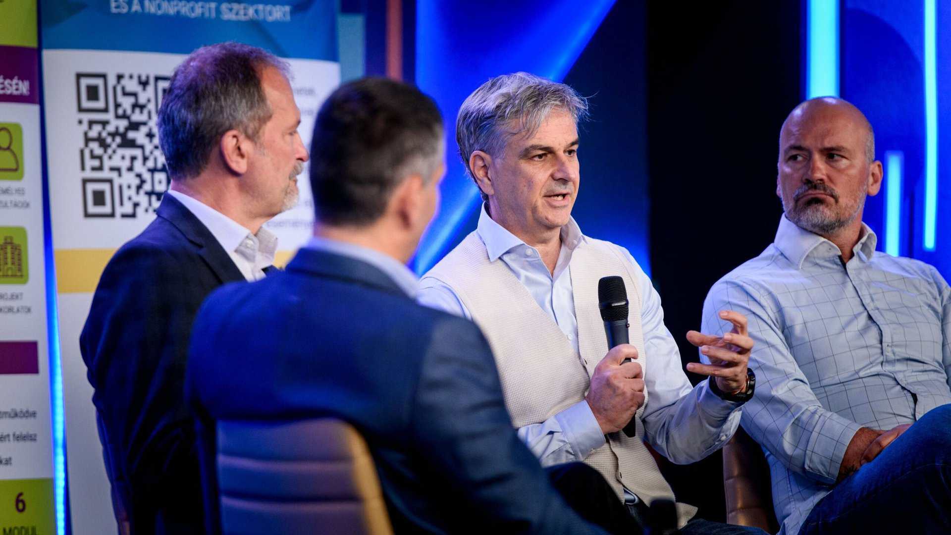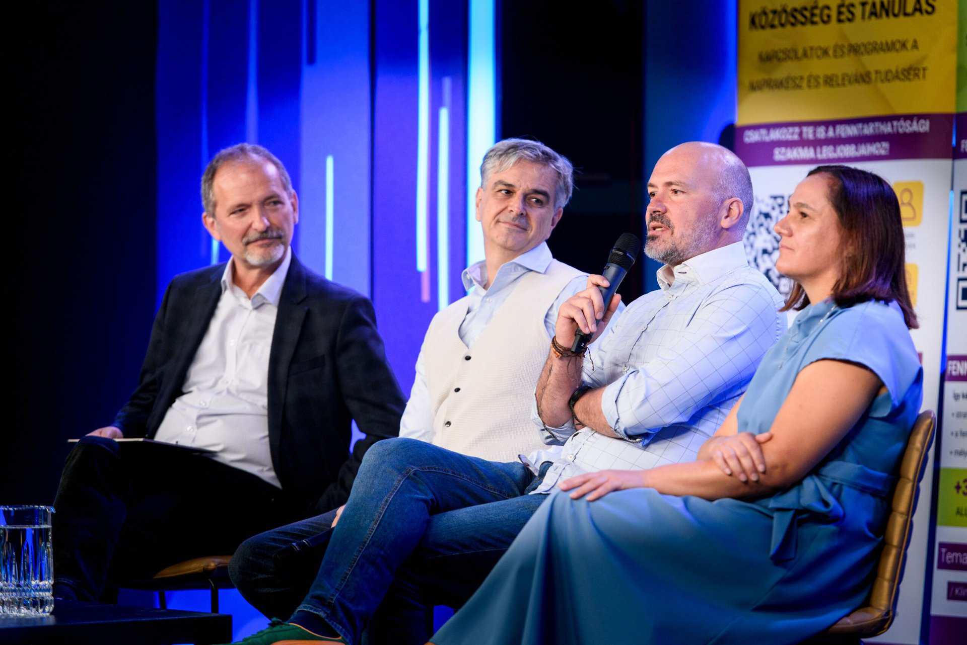 A szakmai reggeli második felében a kerekasztal-beszélgetés résztvevői – Kalmár Péter (Flow Csoport), Molnár Csaba (MagNet Bank), Molnár Attila (ProTeam Consulting) és Fertetics Mandy – saját tapasztalataik alapján bontották ki, hogyan valósul meg a változás a mindennapokban.
