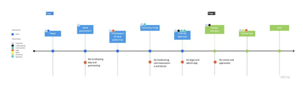 A projekt előrehaladtával Tamborini rájött, hogy nem egy terméket, hanem egy szolgáltatást fog tervezni, ezért elkészítette egy civil szervezet journey map-jét, ami 8 lépésből áll, és az igényektől a projekt megvalósításáig tart.