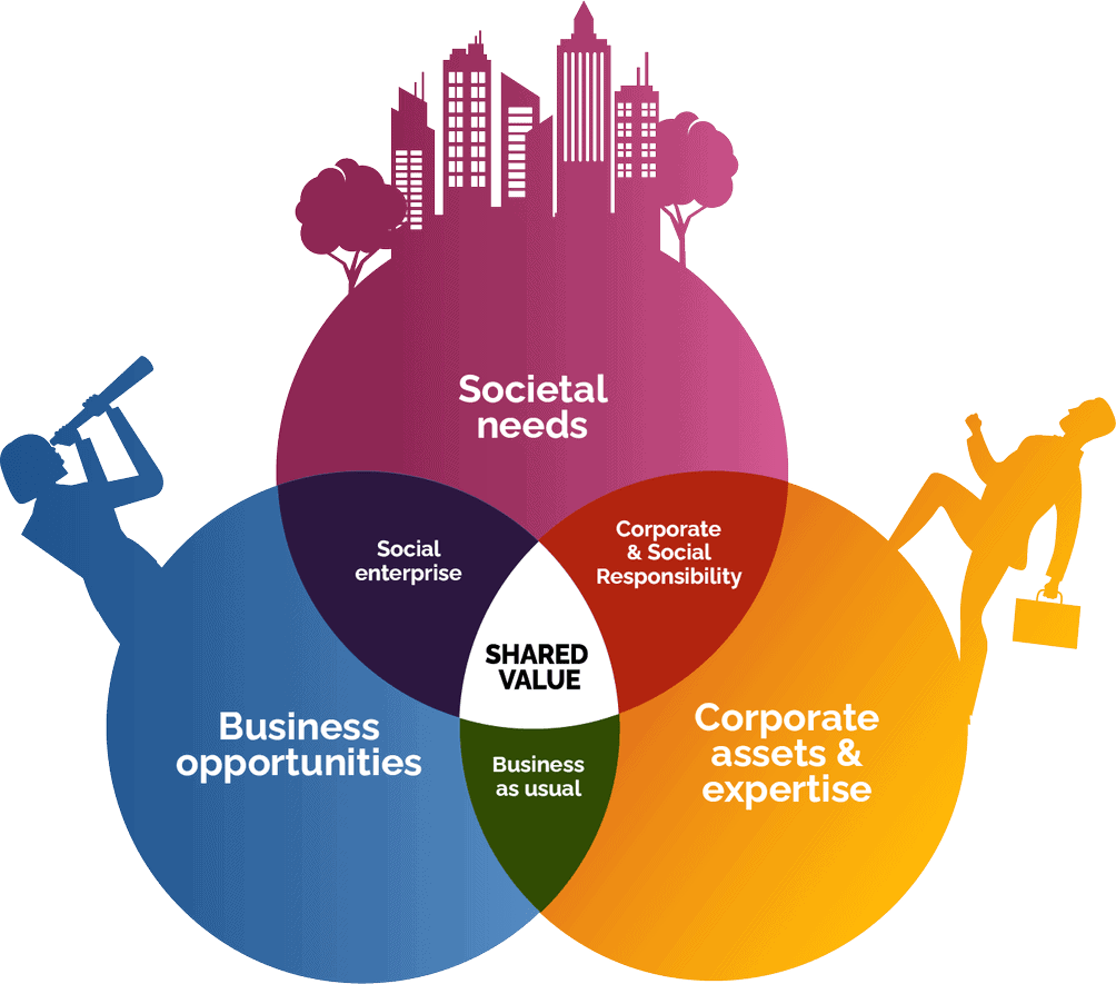 A kulcs az, hogy az üzleti siker és a társadalmi haladás összefügg. A vállalat akkor teremt gazdasági és társadalmi értéket, ha azokra a területekre fókuszál, ahol ezek a célok találkoznak. Ez jelentősen különbözik a hagyományos CSR programoktól, amelyek gyakran a vállalat fő tevékenységétől elkülönítve működnek. A CSV célja ezzel szemben, hogy a társadalmi fejlődést a vállalati stratégia és működés szerves részévé tegye.