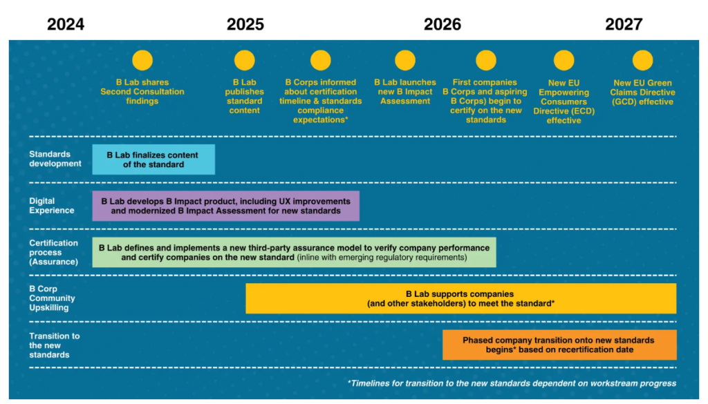 2026-tól megújul a B Corp, a világ egyik legelismertebb és legrégebbi fenntarthatósági (ESG) tanúsítási rendszere z új B Corp szabványok célja a tanúsítási folyamat átláthatóságának növelése, a társadalmi és környezeti teljesítmény szigorúbb ellenőrzése, valamint a vállalatok folyamatos fejlődésének ösztönzése. Bár az új szabályozás szigorúbb és részletesebb, az igazságosabb elvárások, a testreszabott megközelítés és az egyértelműbb iránymutatások segítik a vállalatokat abban, hogy érdemben hozzájáruljanak a globális fenntarthatósági célokhoz.